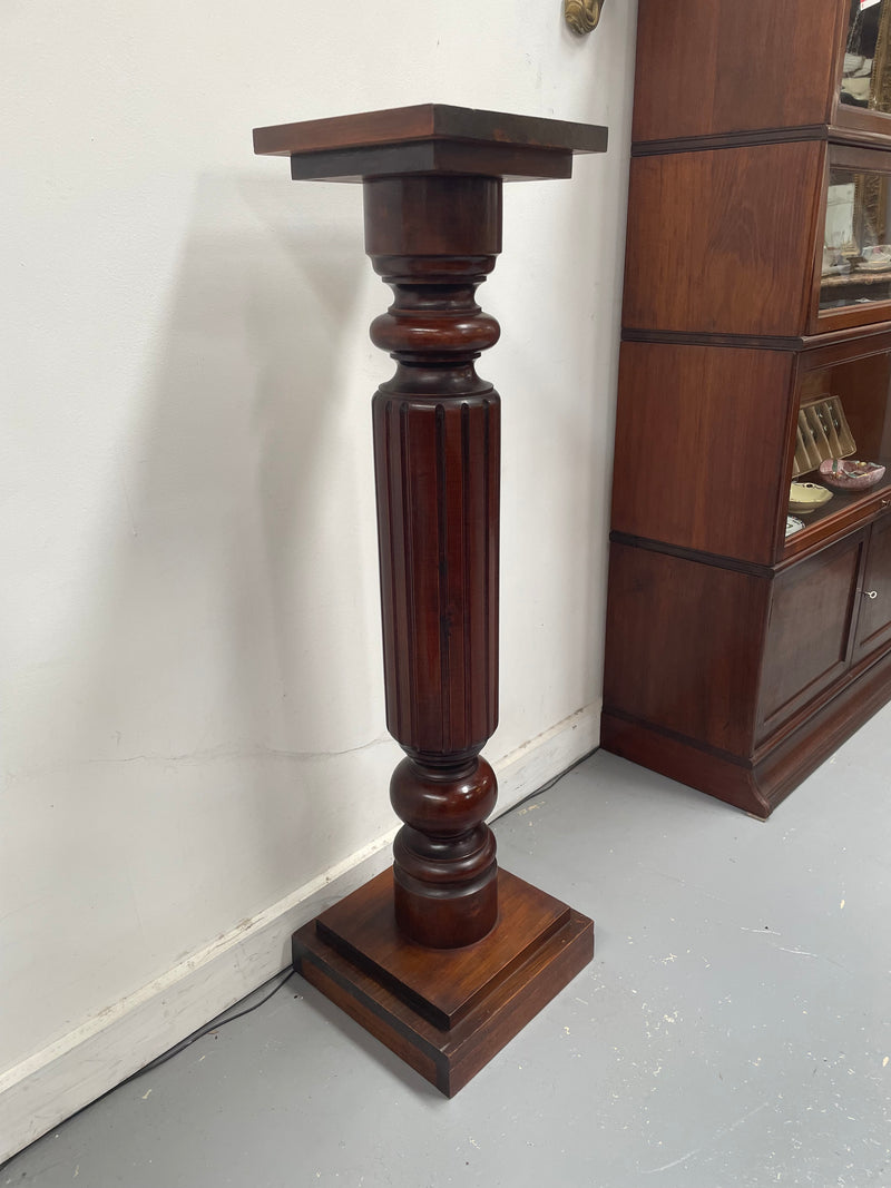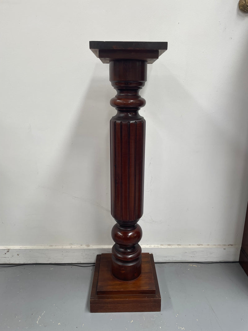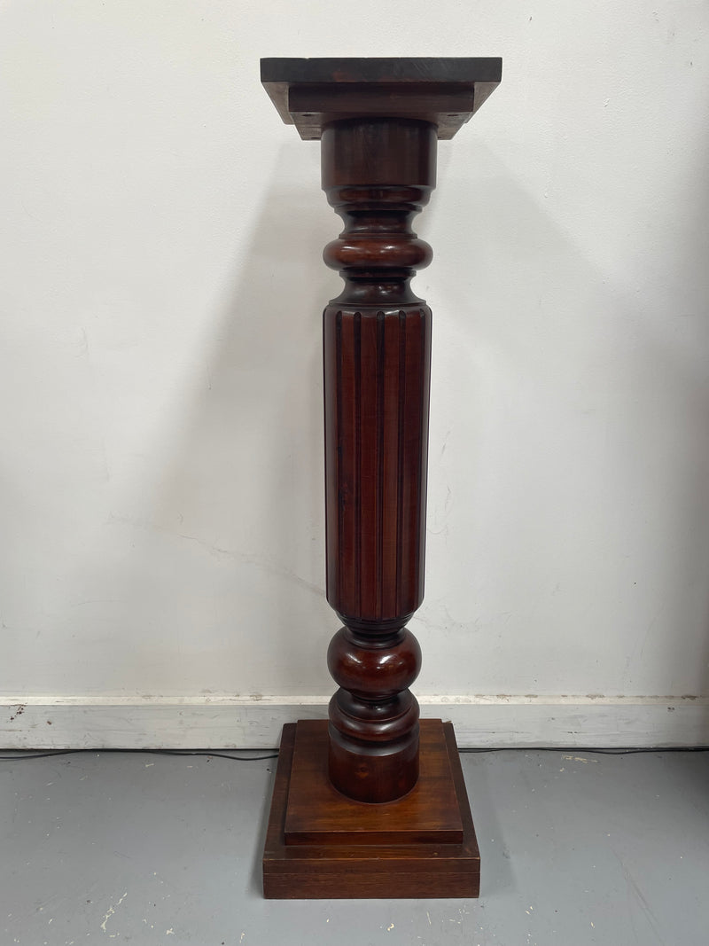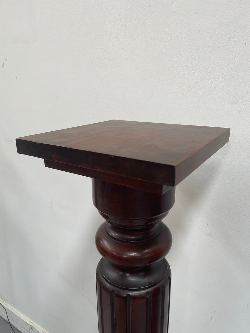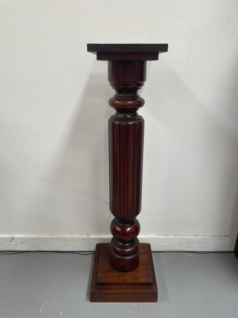 Charming solid Mahogany fluted column pedestal. Sourced locally and in good original condition. Please view photos as they help to form part of the description and condition.