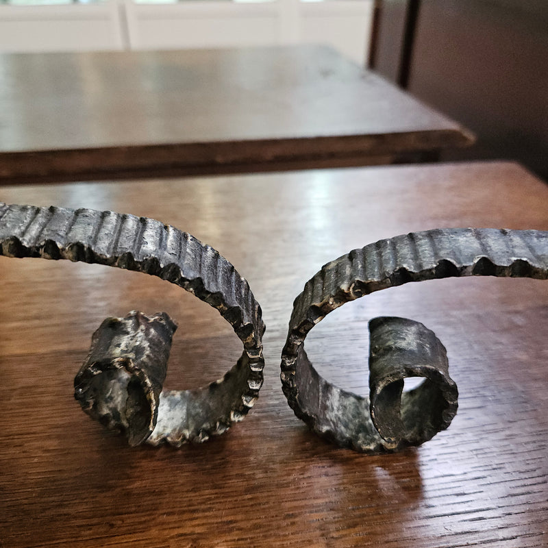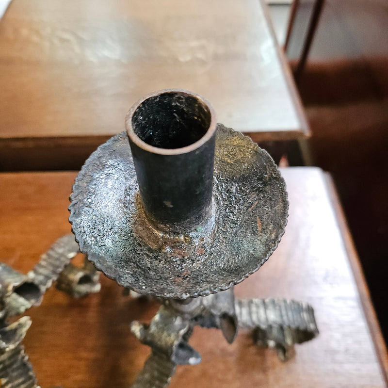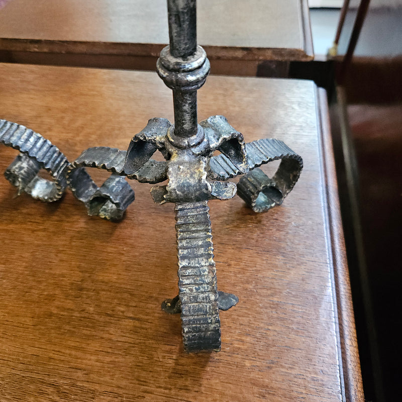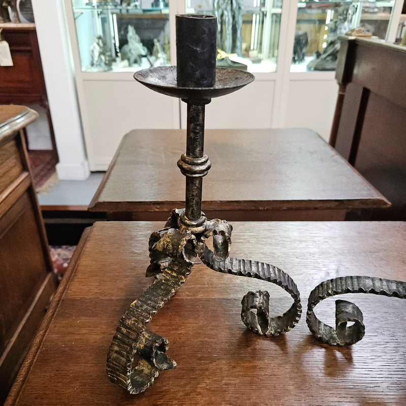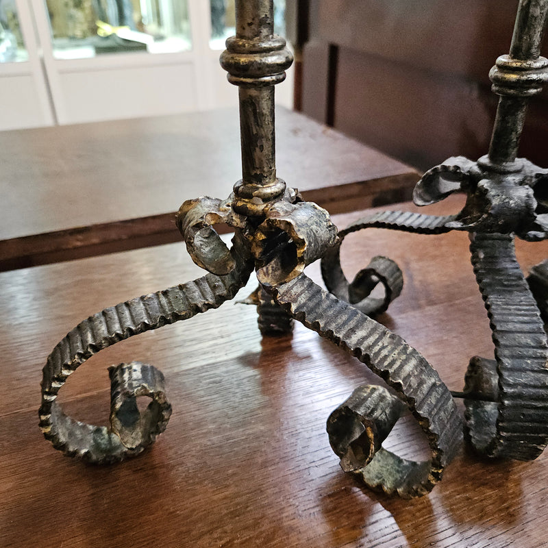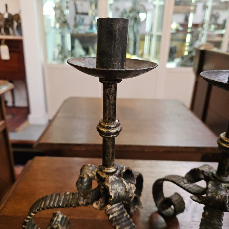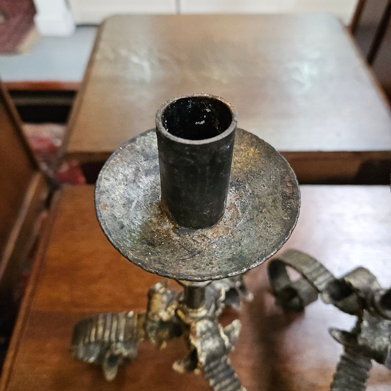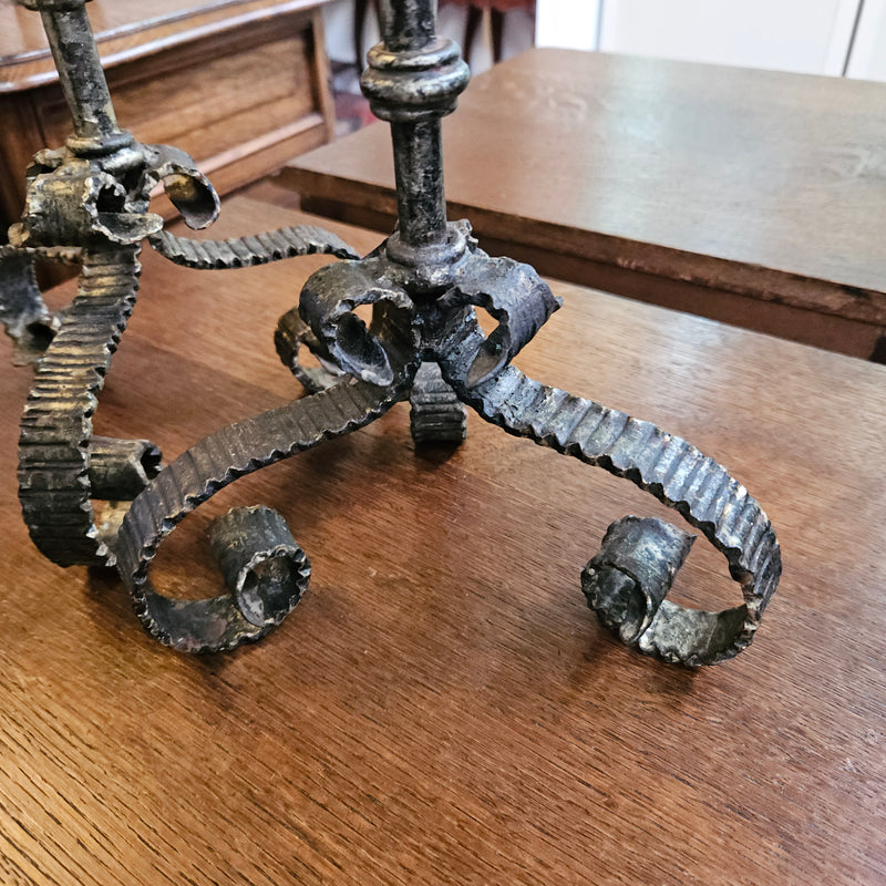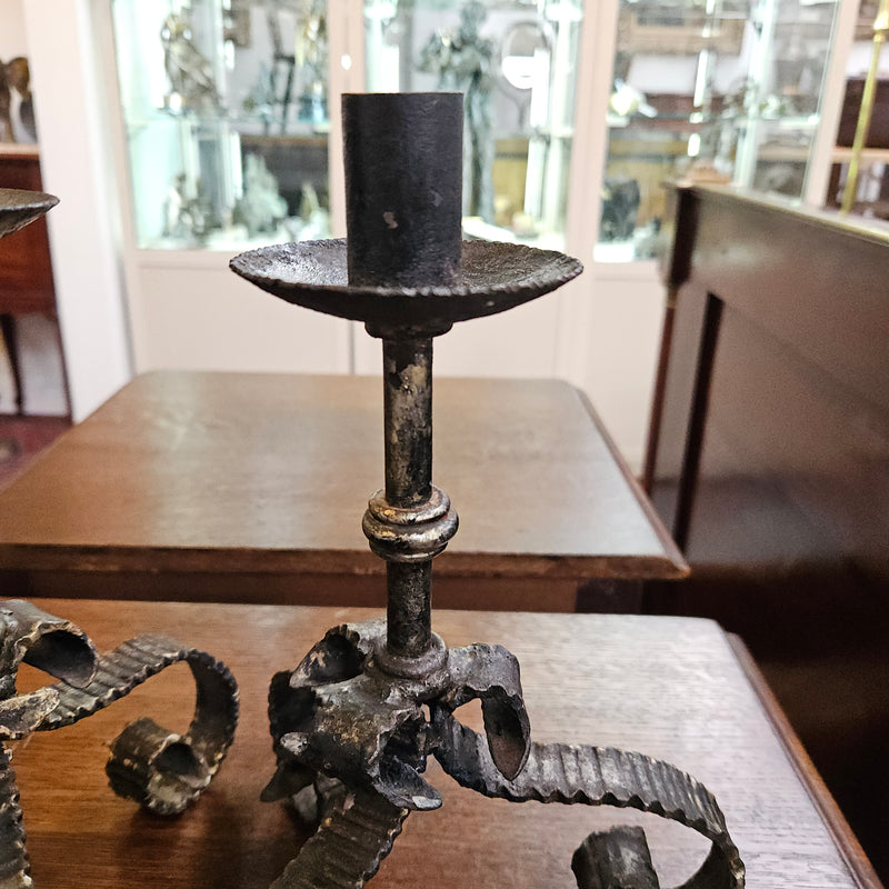 Rustic pair of wrought iron candlesticks, they are in good original condition. Please see photos as they form part of the description and condition.